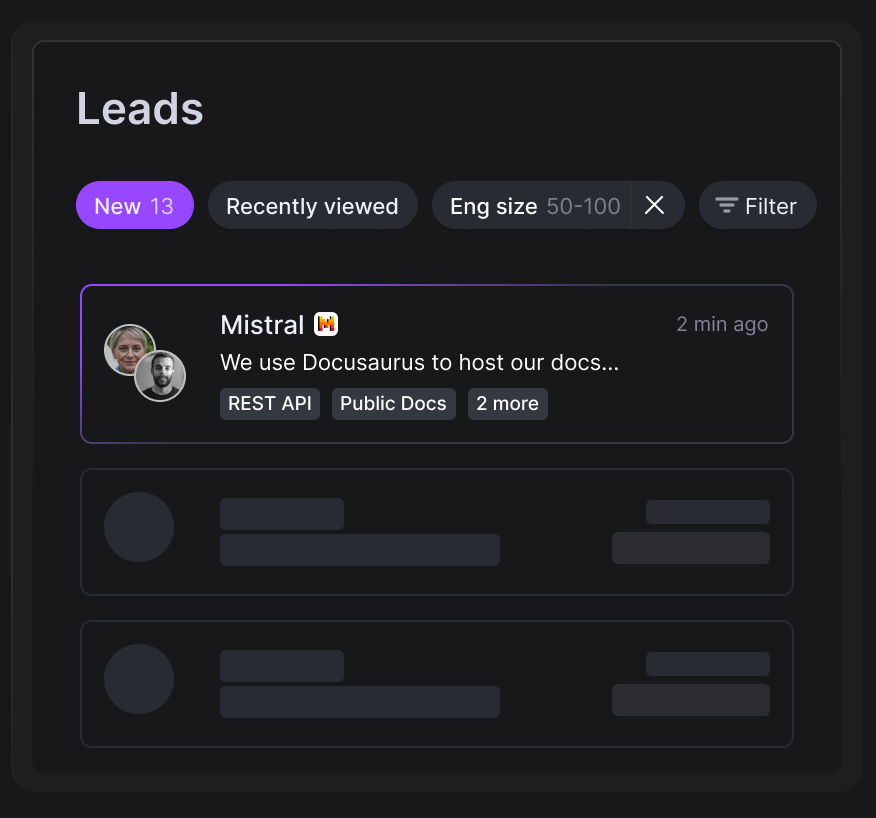 Auto-fill your pipeline with relevant leads based on immediacy and need. Know exactly who to contact, and why.