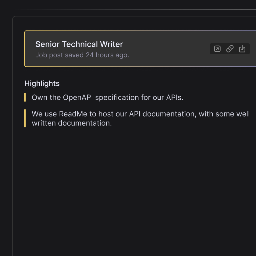 I read in a recent job post of yours, "Senior Technical Writer" that you have OpenAPI specs, and are currently hosting your docs on ReadMe.